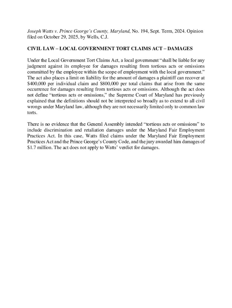 Get the free Joseph Watts v. Prince George's County, Maryland, No. ...