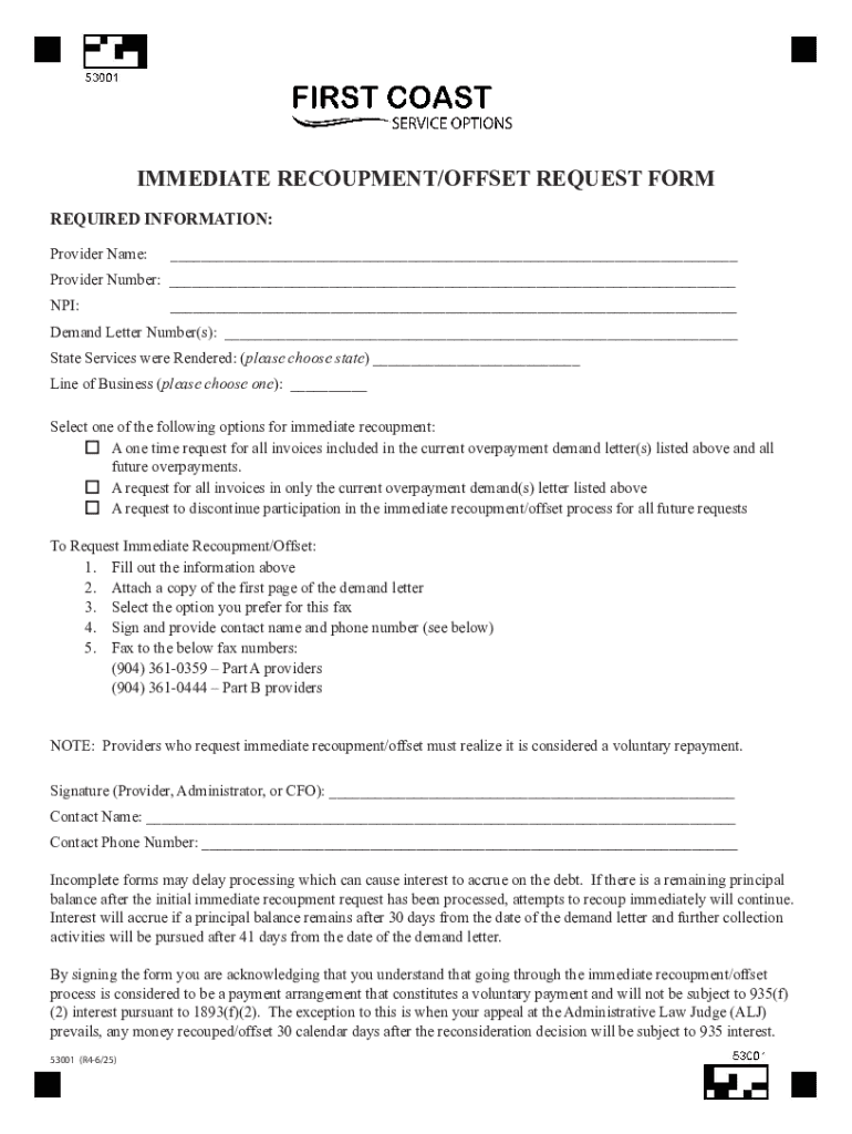 Get, Create, Make and Sign immediate recoupmentoffset request form