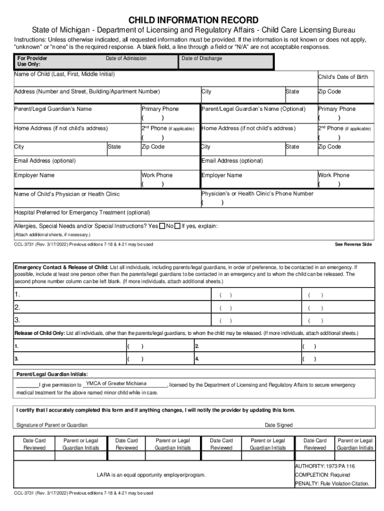 Get the free All child care centers must maintain a licensing notebook ...