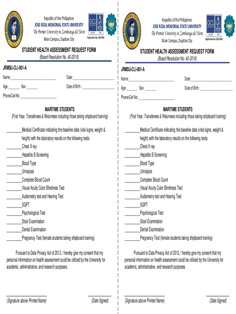 Get the free Jose Rizal Memorial State University: College of Nursing ...