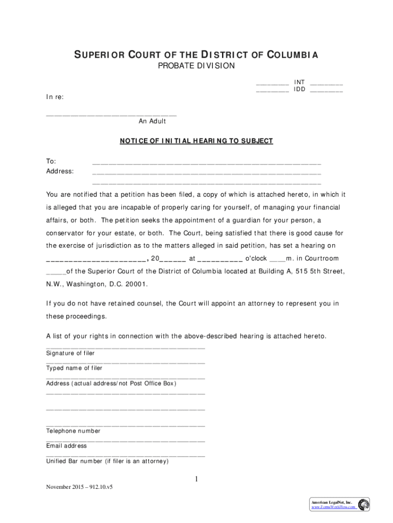 Get the free Notice Of Initial Hearing To Other Persons :: District Of ...