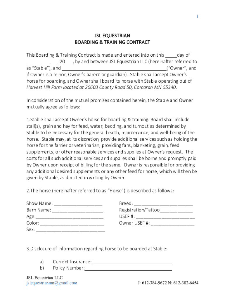 The NSA Horsemanship Training Contract is a critical document that establishes the relationship between trainers and horse owners within the realm of horse training services. This contract serves to outline the expectations, responsibilities, and terms of engagement for both parties, ensuring clarity and mutual understanding throughout the training process.