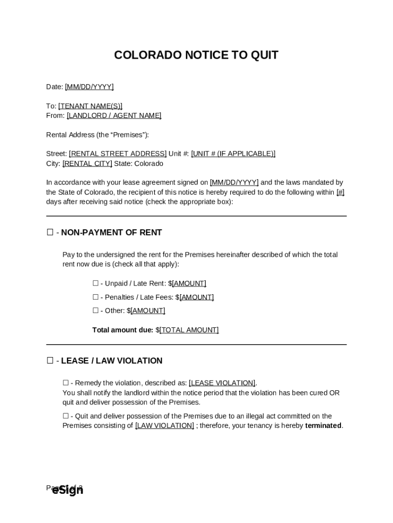 NOTICE TO QUIT FOR NON-PAYMENT OF RENT To template instructions