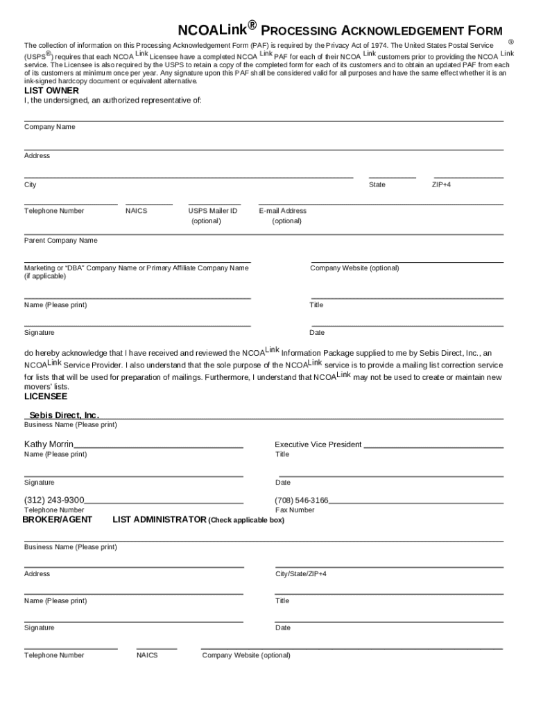 Comprehensive Guide to the NCOA Processing Acknowledgement Form