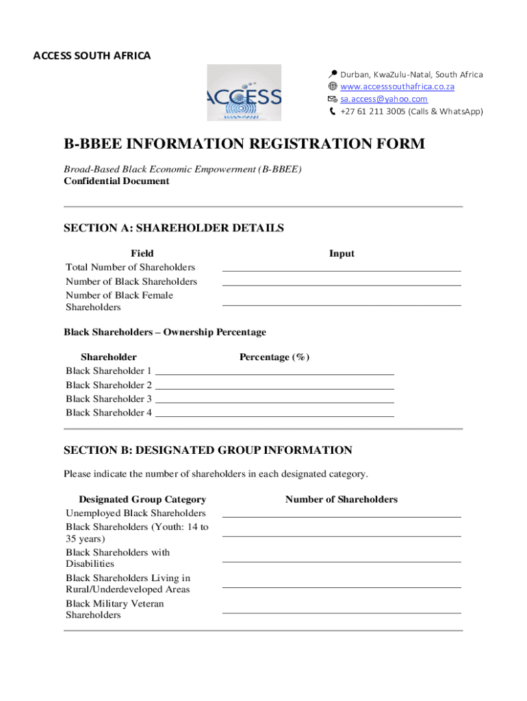 Before diving in and accessing the Access South Africa Form, it's essential to gather all necessary information and documents that may be required for completion. This typically includes personal identification documents such as your ID or passport, proof of residence, and any additional paperwork relevant to your specific request—like financial statements or consent forms depending on the nature of the service solicited.
