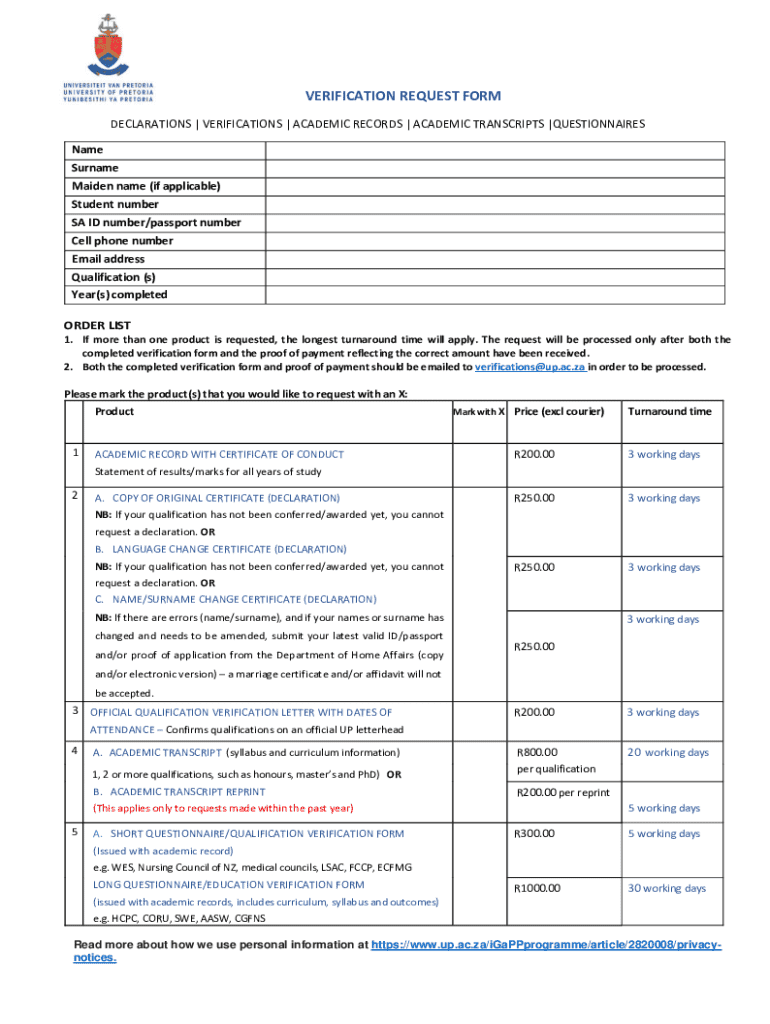 Get, Create, Make and Sign verification request form