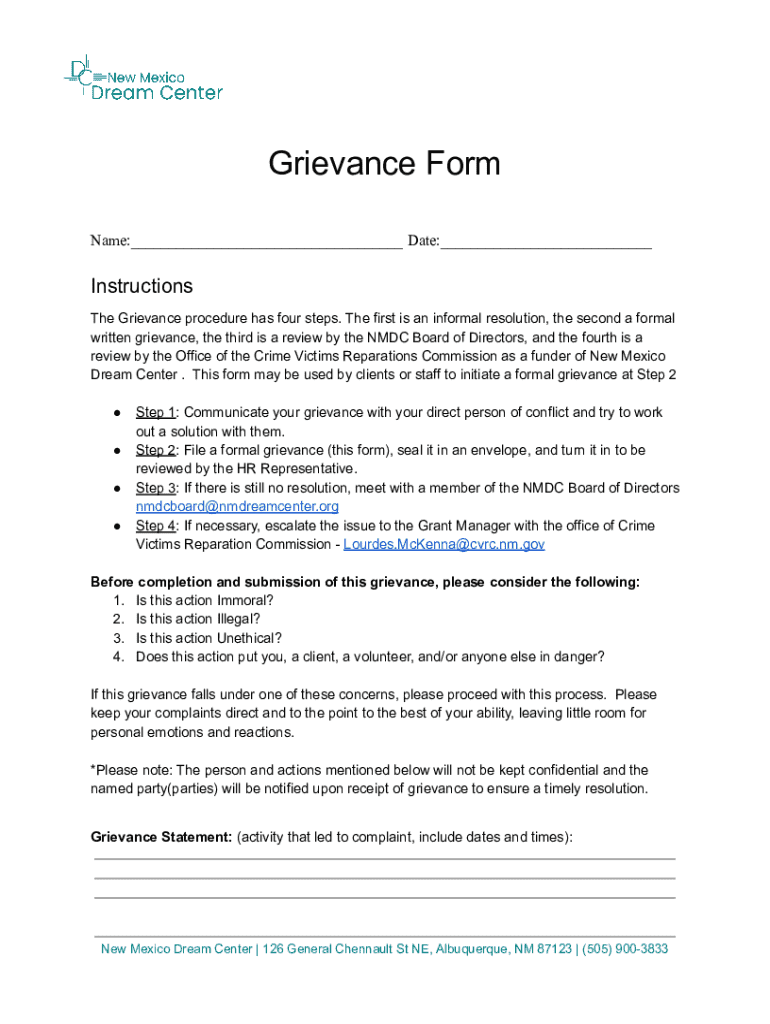Get the free NMDC Grievance Form