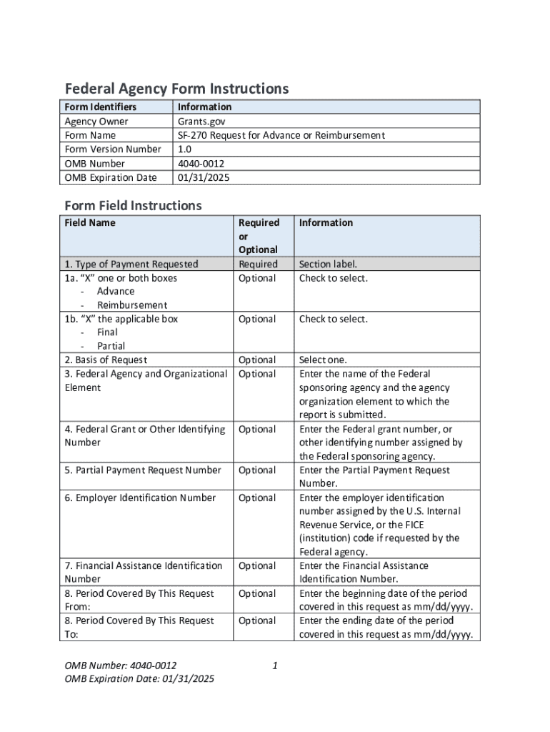 The SF-270 Request for Advance Form is essential for managing the funding process for federal grants and contracts. It serves as a means for recipients of federal funds to request advance payments to support ongoing activities funded by government grants. Properly filling out this form ensures that recipients can maintain cash flow, allowing them to cover necessary expenses before federal reimbursement occurs.