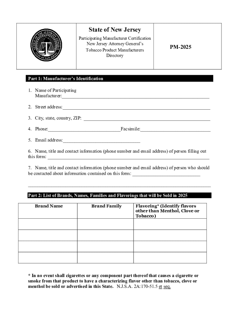 Get the free New Jersey Office of the Attorney General Tobacco ...