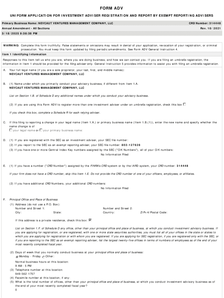 Get the free NEVCAUT VENTURES MANAGEMENT COMPANY, LLC