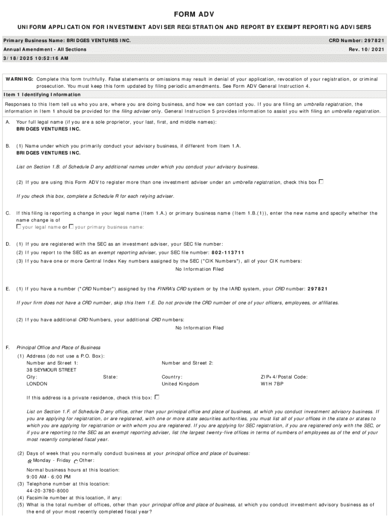 Get the free BRIDGES VENTURES INC. - Investment Adviser Firm