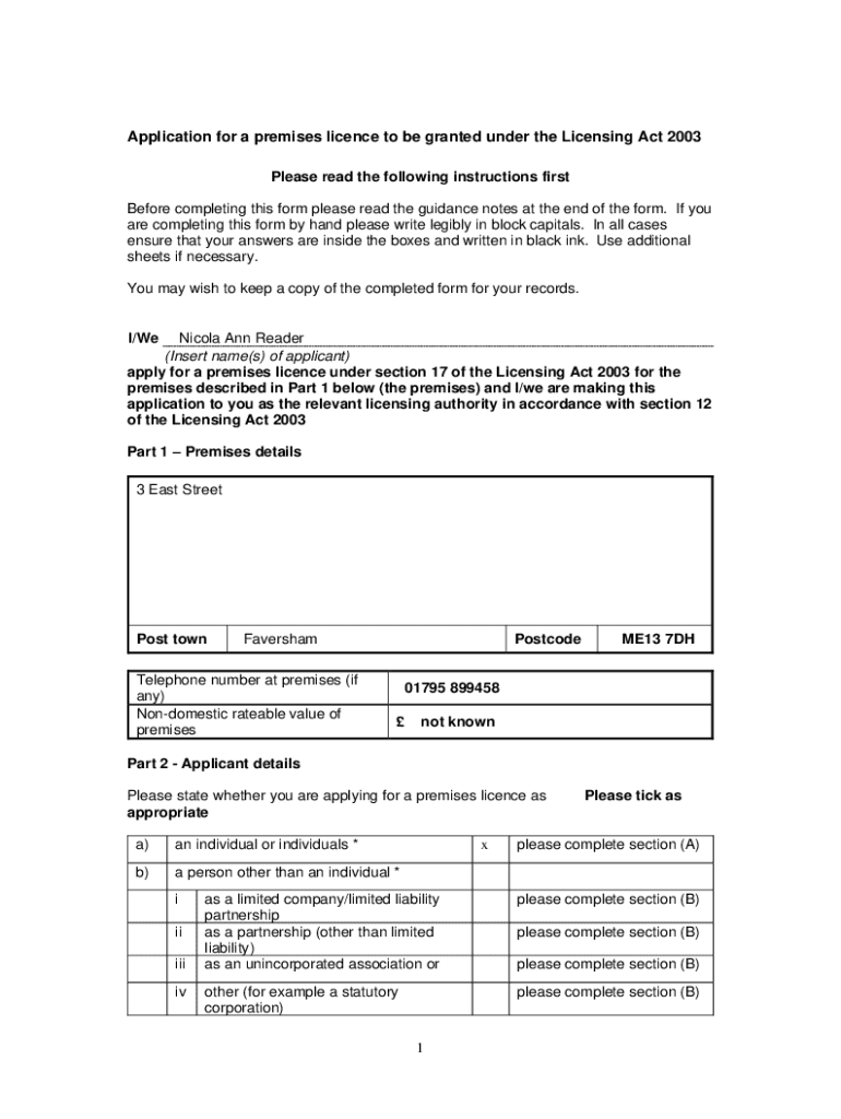 Application for a premises licence to be granted under the Licensing Act 2003 Please read the following instructions first Before completing this form please read the guidance notes at the end of