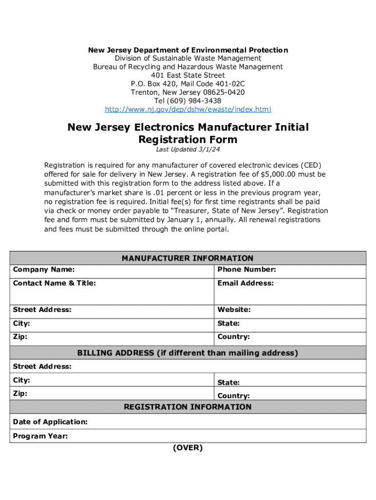 New Jersey Department of Environmental Protection Division of Sustainable Waste Management Bureau of Recycling and Hazardous Waste Management 401 East State Street P.O. Box 420, Mail Code 40102C Trenton,