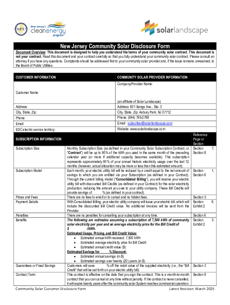 Get the free NEW JERSEY SOLAR PURCHASE DISCLOSURE ...