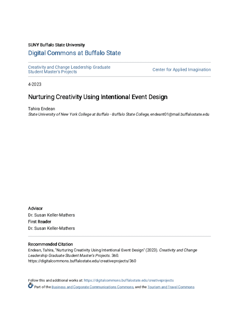 Get the free Nurturing Creativity Using Intentional Event Design - digitalcommons buffalostate