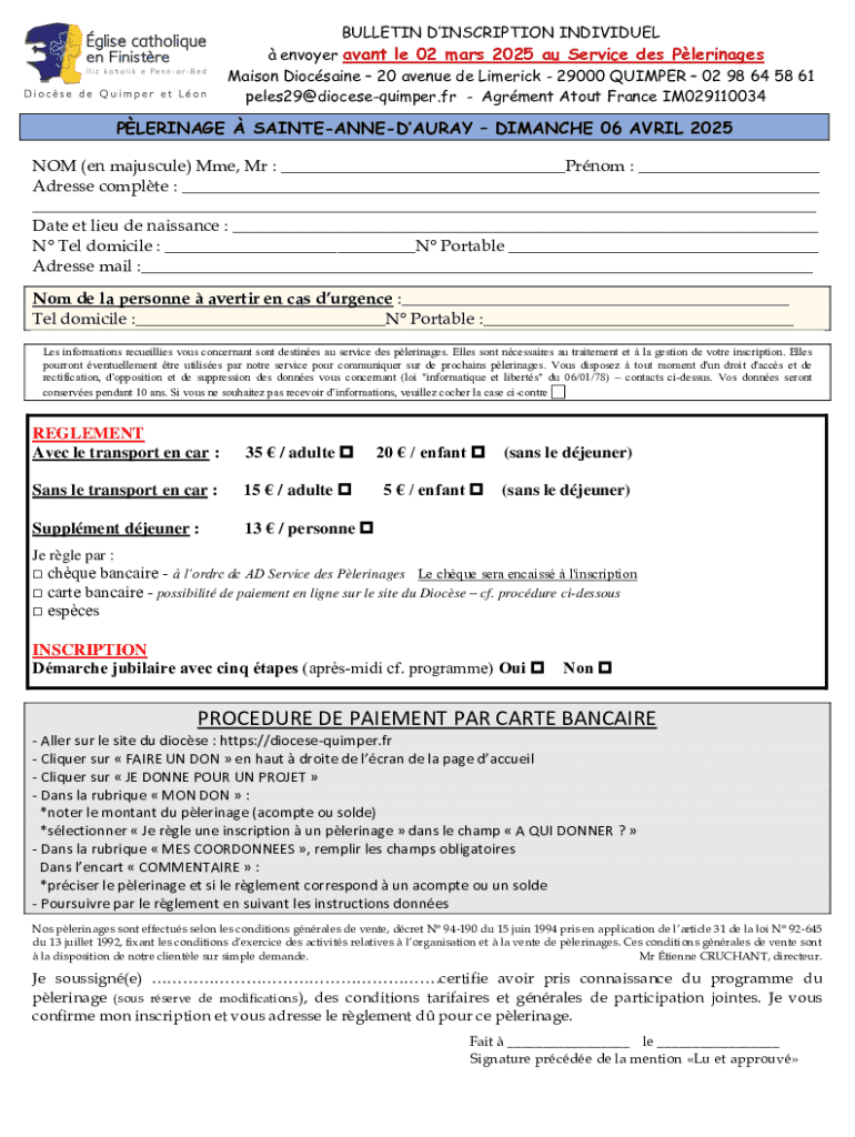 Obtenir le gratuit BULLETIN D'INSCRIPTION INDIVIDUEL