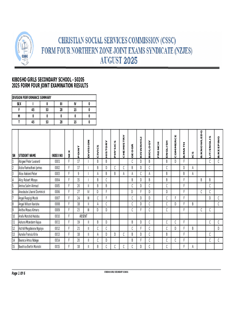 Get the free Kibosho Girl's Secondary School - NECTAO'levelForm 4