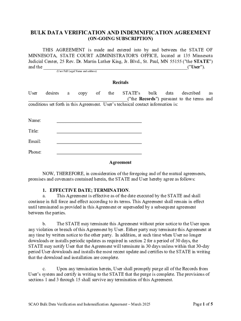 A bulk data agreement form is a legal document that outlines the terms and conditions under which bulk data exchanges occur between two or more parties. This form serves as a crucial tool for organizations that deal with large volumes of data, ensuring that both parties clearly understand their roles, responsibilities, and risks associated with data handling. The primary purpose of this agreement is to protect sensitive data, promote accountability, and ensure compliance with relevant regulations.