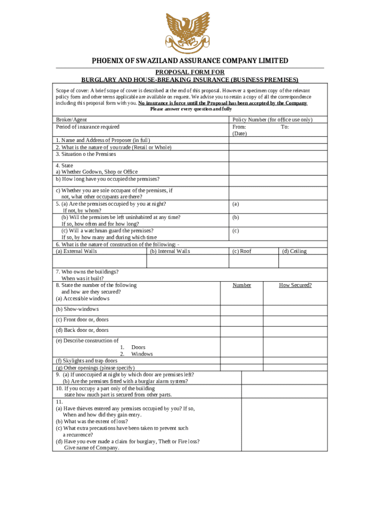 What is Burglary Insurance Proposal PDFSecurity Alarm Form?
