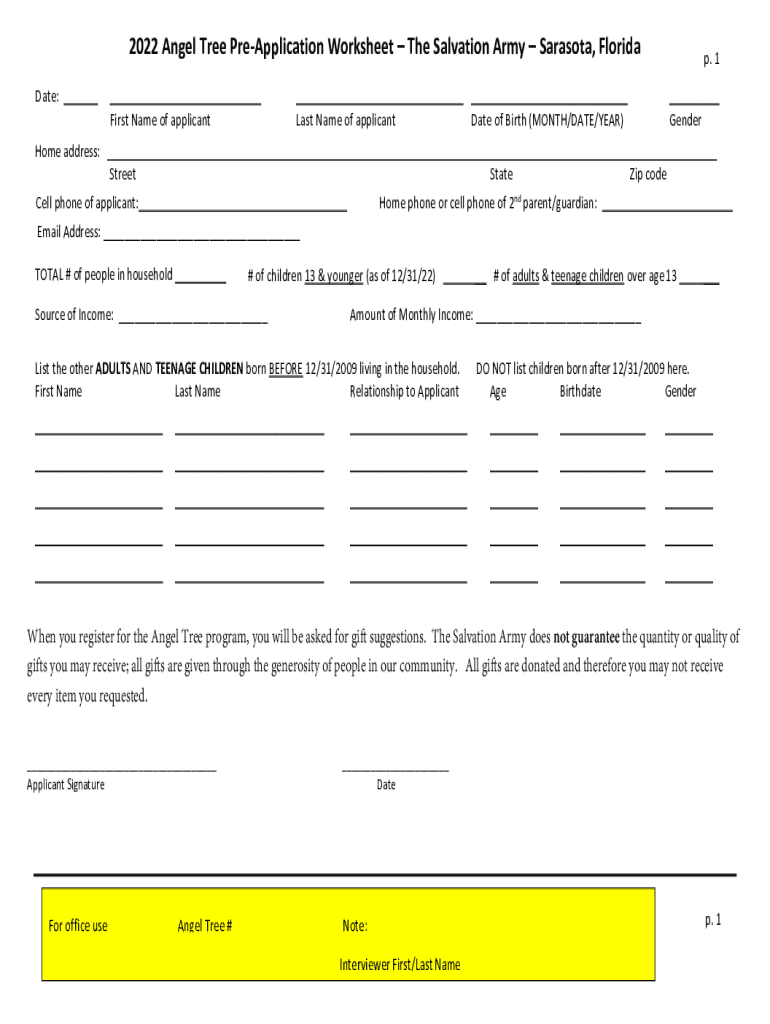 2022 Angel Tree Pre-Application Form: A Comprehensive Guide
