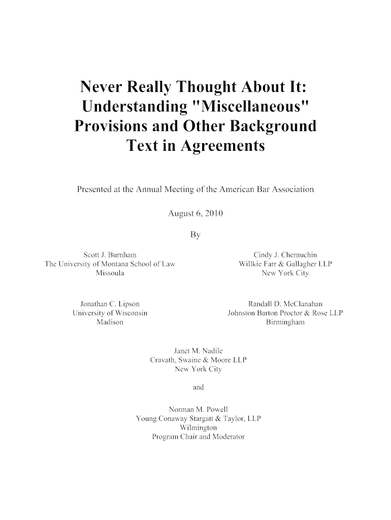 Table of Contents. 1. ... subjects, both for the mainstream media and in academic publications. ... active in the American Bar Association Business Law Section, currently serving as its Commercial