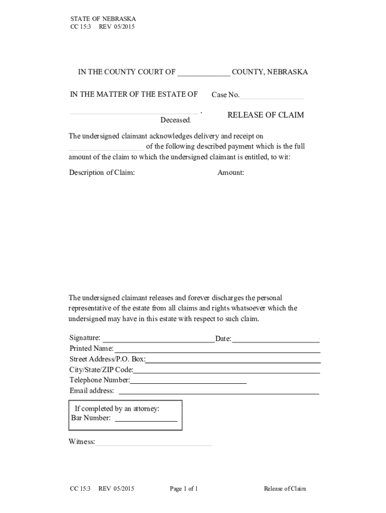 Get the free Nebraska State Court Form CC 15:5 Rev. 03/2019