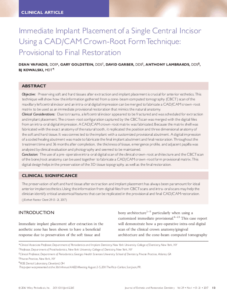 Get the free Immediate Implant Placement of a Single Central Incisor Using a CAD/CAM Crown...