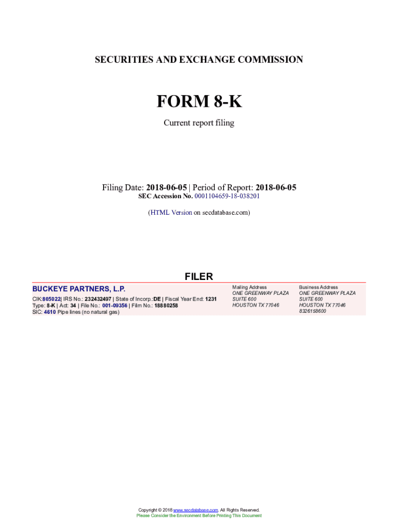 Get the free BUCKEYE PARTNERS, L.P. Form 8-K Current ...