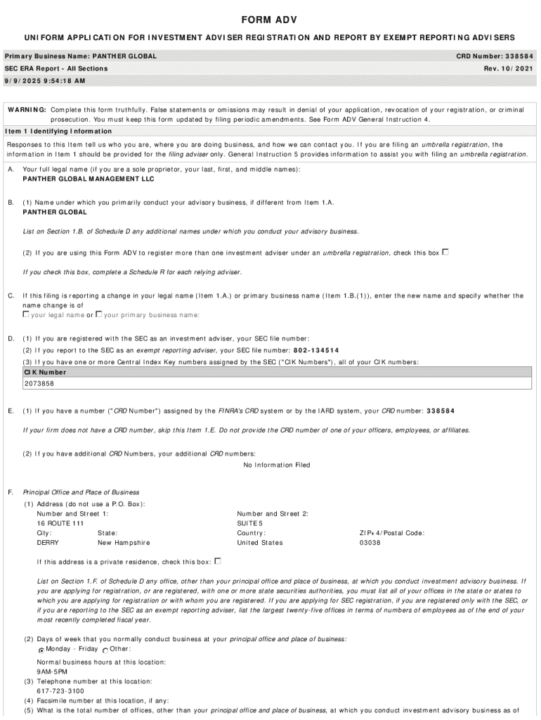 Get the free Primary Business Name: PANTHER GLOBAL