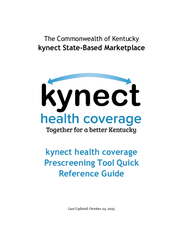 The Commonwealth of Kentuckykynect StateBased Marketplacekynect health coverage Prescreening Tool Quick Reference GuideLast Updated: October 24, 2025Quick Reference Guide: kynect health coverage Prescreening