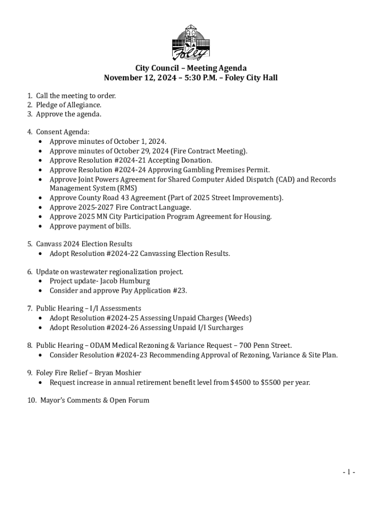 Get the free Agenda for August 3, 2007 - City of Foley, Minnesota - ci foley mn