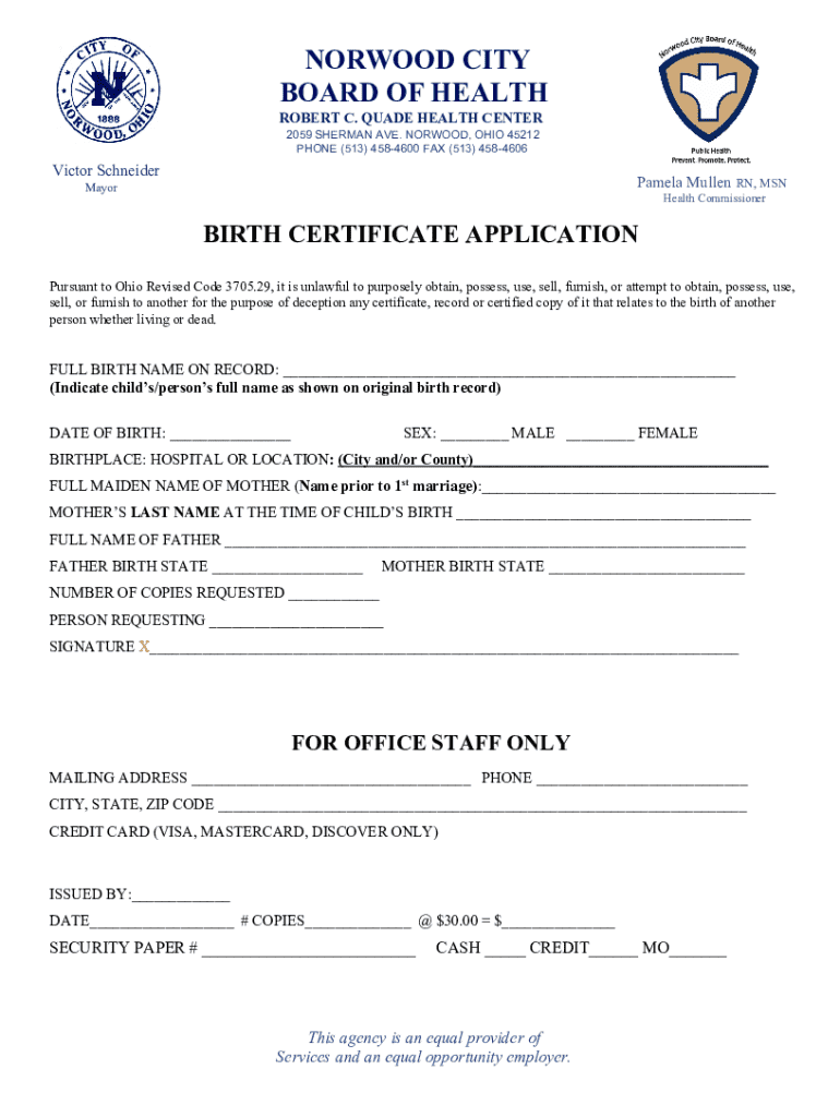 Get the free NORWOOD CITY HEALTH DEPARTMENT