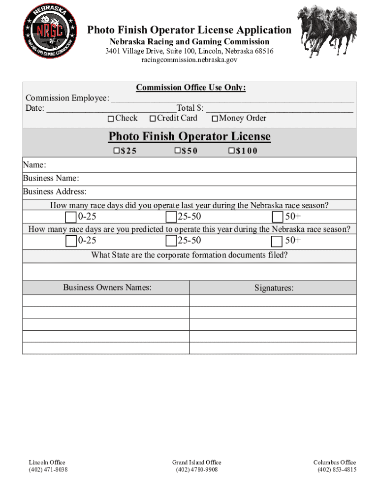 Get the free Applications open for Nebraska State Racing and Gaming ...