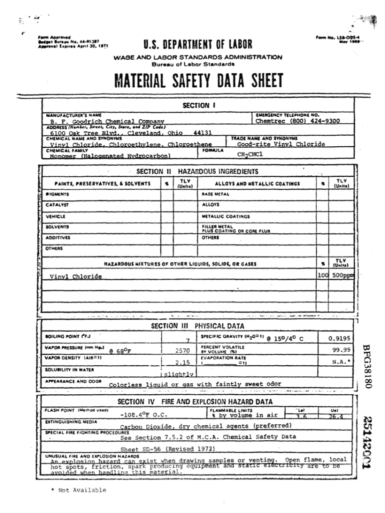 rform A00\'*v4 Mfllt lufu No. Approval Cspirot April 30. 1971totm No. L$ft09$*4 Mor *96* U.S. DEPARTMENT OF LABOR WAGE AND LABOR STANDARDS ADMINISTRATION Bureau of Labor StandardsMATERIAL SAFETY DATA