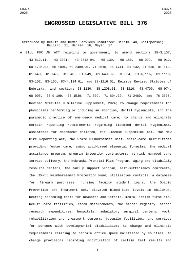 Get the free Bill tracking in Nebraska - LB 376 (109 legislative session)