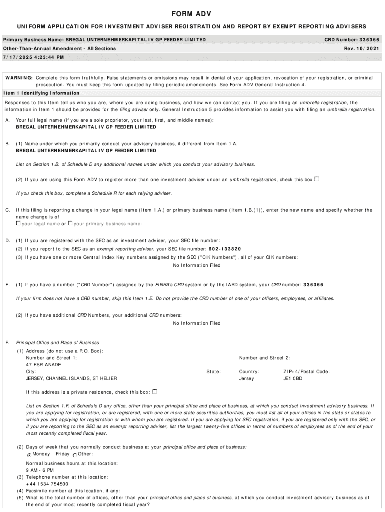Get the free BREGAL UNTERNEHMERKAPITAL IV GP FEEDER LIMITED