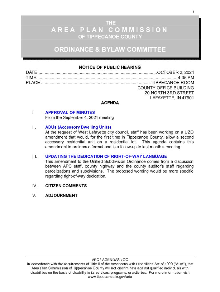 Get the free AREA PLAN COMMISSION ORDINANCE & BYLAW COMMITTEE