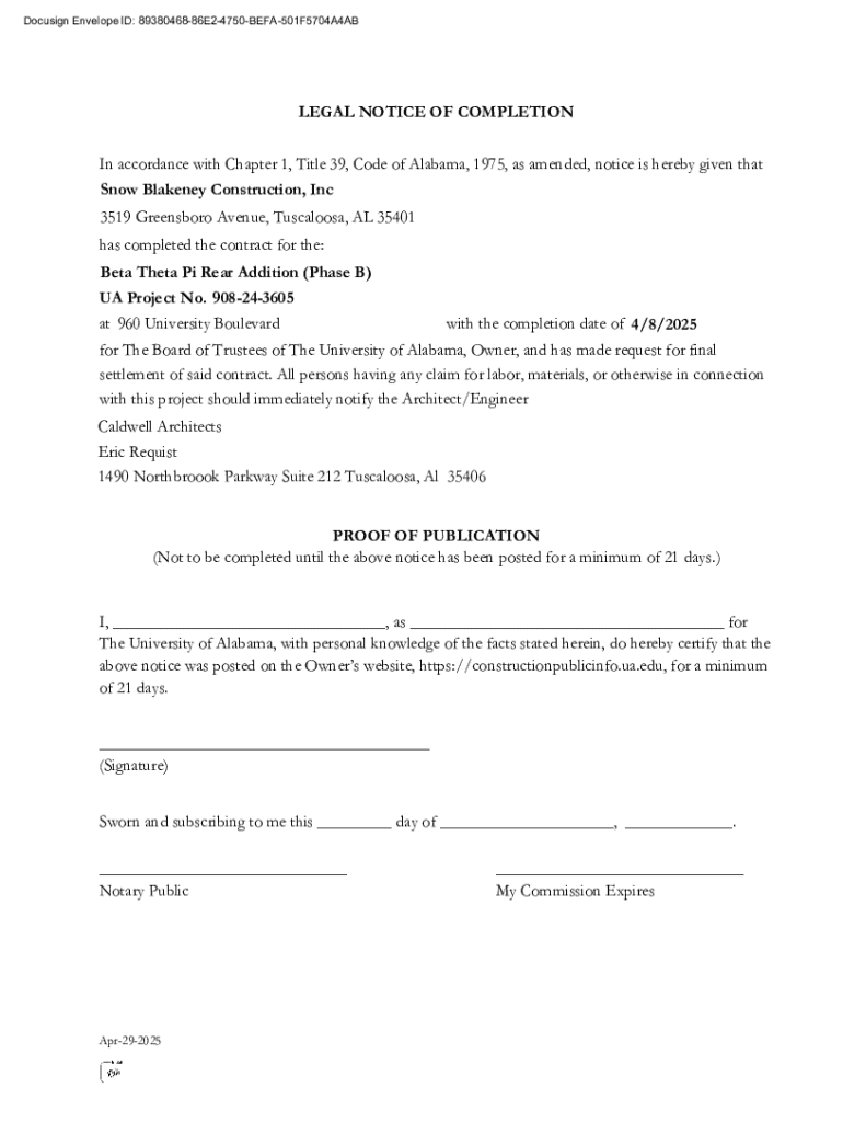 Get, Create, Make and Sign notice of completion legal