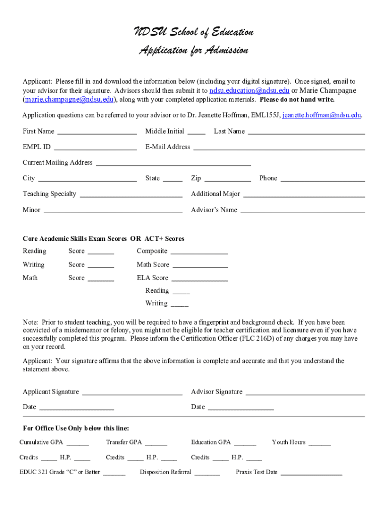 Get the free NDSU School of Education Application for Admission Form