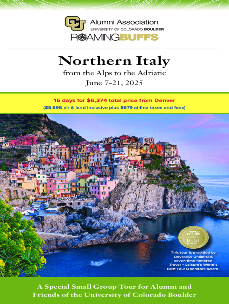 Northern Italy from the Alps to the Adriatic June 721, 2025 15 days for $6,374 total price from Denver ($5,695 air & land inclusive plus $679 airline taxes and fees)This tour is provided by Odysseys