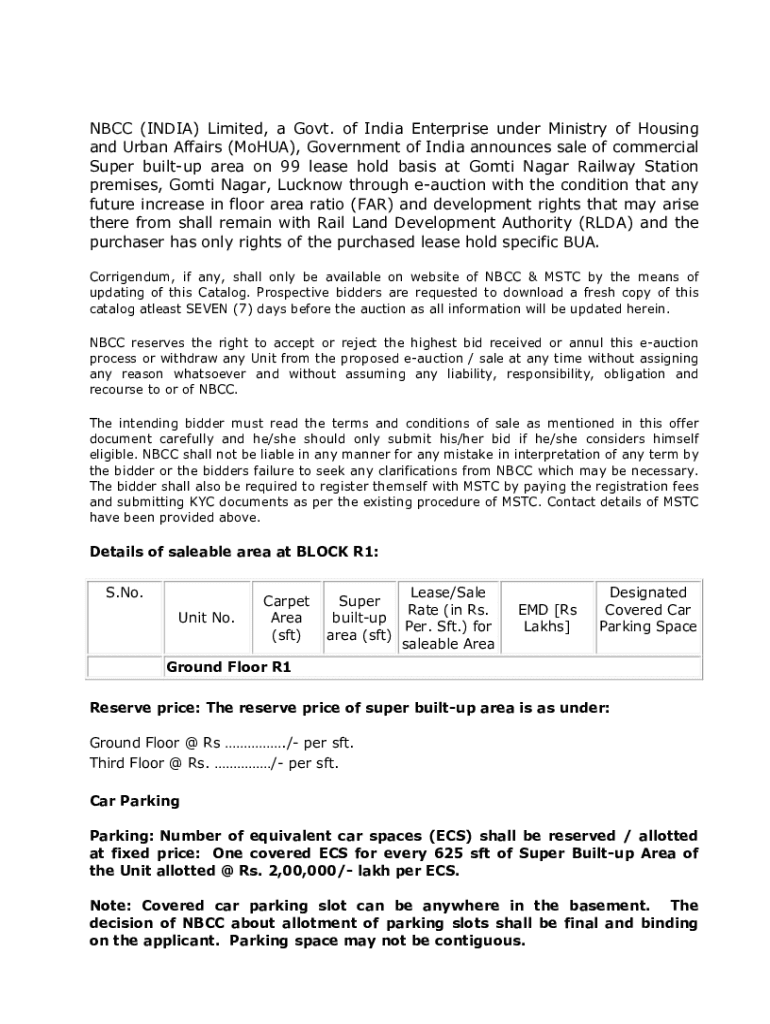 The National Buildings Construction Corporation (NBCC) plays a crucial role in the real estate market of India, particularly in commercial sales. As a leading public sector enterprise, NBCC has achieved significant milestones in transforming vacant land into productive commercial space. The sale of commercial spaces by NBCC is facilitated through a structured approach, ensuring transparency and compliance with industry regulations.
