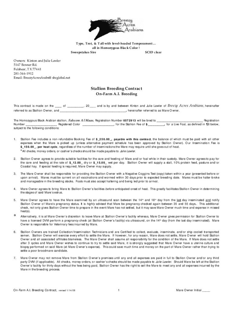Get the free Breeding Contract-On-Farm A.I. updt1-14-08.wps