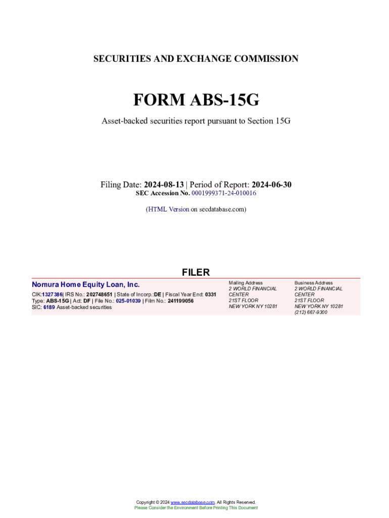 Get the free Nomura Asset Depositor Company, LLC Form ABS-15G Filed ...