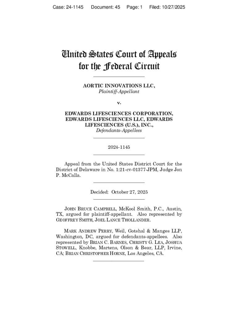 Get the free AORTIC INNOVATIONS LLC v. EDWARDS LIFESCIENCES ...