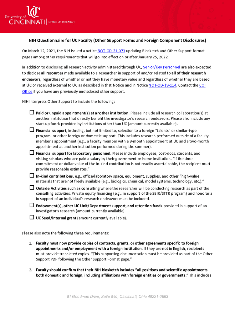 Get the free NIH Questionnaire for UC Faculty (Other Support Forms and Foreign ... - research uc