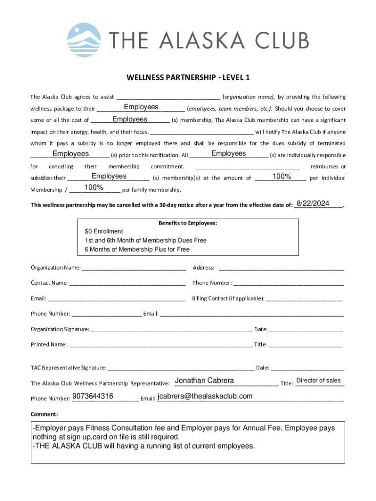 The wellness partnership - level form serves as a foundational document that facilitates collaboration in health and wellness initiatives. By streamlining the process of gathering information, this form helps both individuals and teams articulate their wellness goals and commitments effectively.