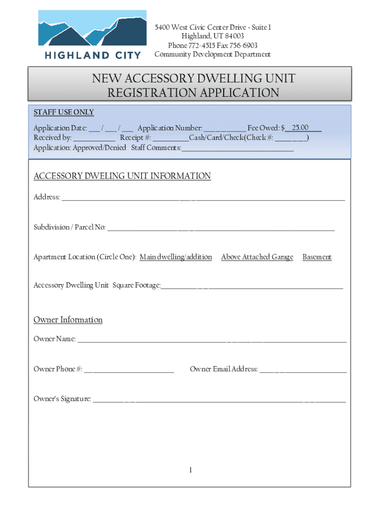 Get the free NEW ACCESSORY DWELLING UNIT REGISTRATION APPLICATION