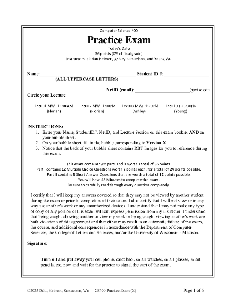 Get the free CS400 Practice Midterm Exam: Key Concepts and Questions - pages cs wisc