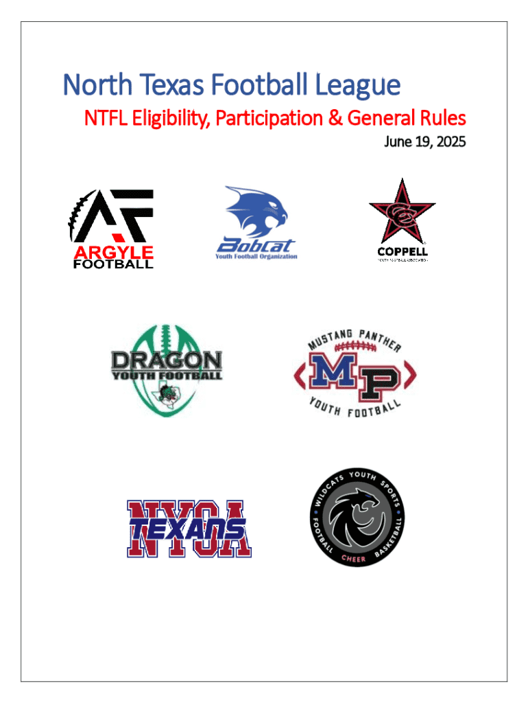 North Texas Football League NTFL Eligibility, Participation & General Rules June 19, 2025NTFL Eligibility, Participation & General Rules RULE 1: PLAYER ELIGIBILITY & DIVISIONS 1. Age Requirements