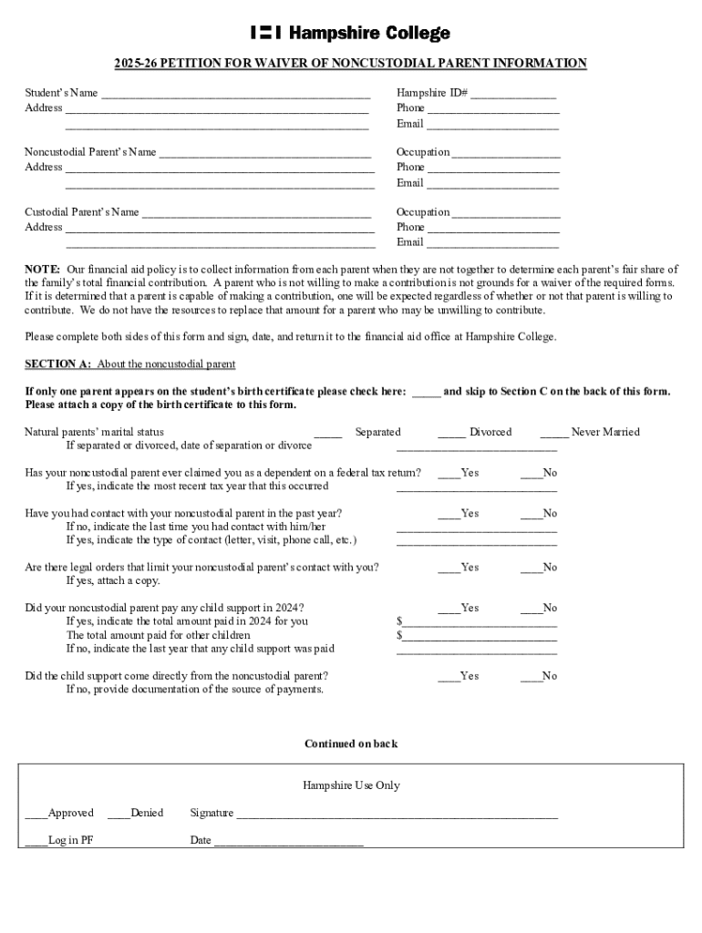Get the free Non-custodial Parent Waiver Request 202526 Academic Year
